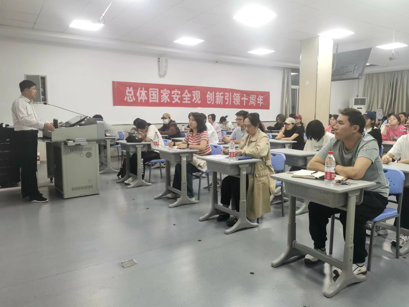 在习近平总书记总体国家安全观提出十周年和第九个全民国家安全教育日来临之际,为切实提升广大师生的国家安全意识,4月15日晚19:30,beat365中文官方网站与民族教育学院于雁塔校区教学六楼6301教室联合举办了国家安全专题会通讲堂。本次讲堂以“国家安全概述”为主题,特邀西安陆军学院大校、全国“国防教育专家库”专家宋向民教授担任主讲,beat365中文官方网站党委副书记鲁燕主持会议,民族教育学院团委书记热依木、beat365中文官方网站研究生辅导员董洁及100余名学生参与会议。