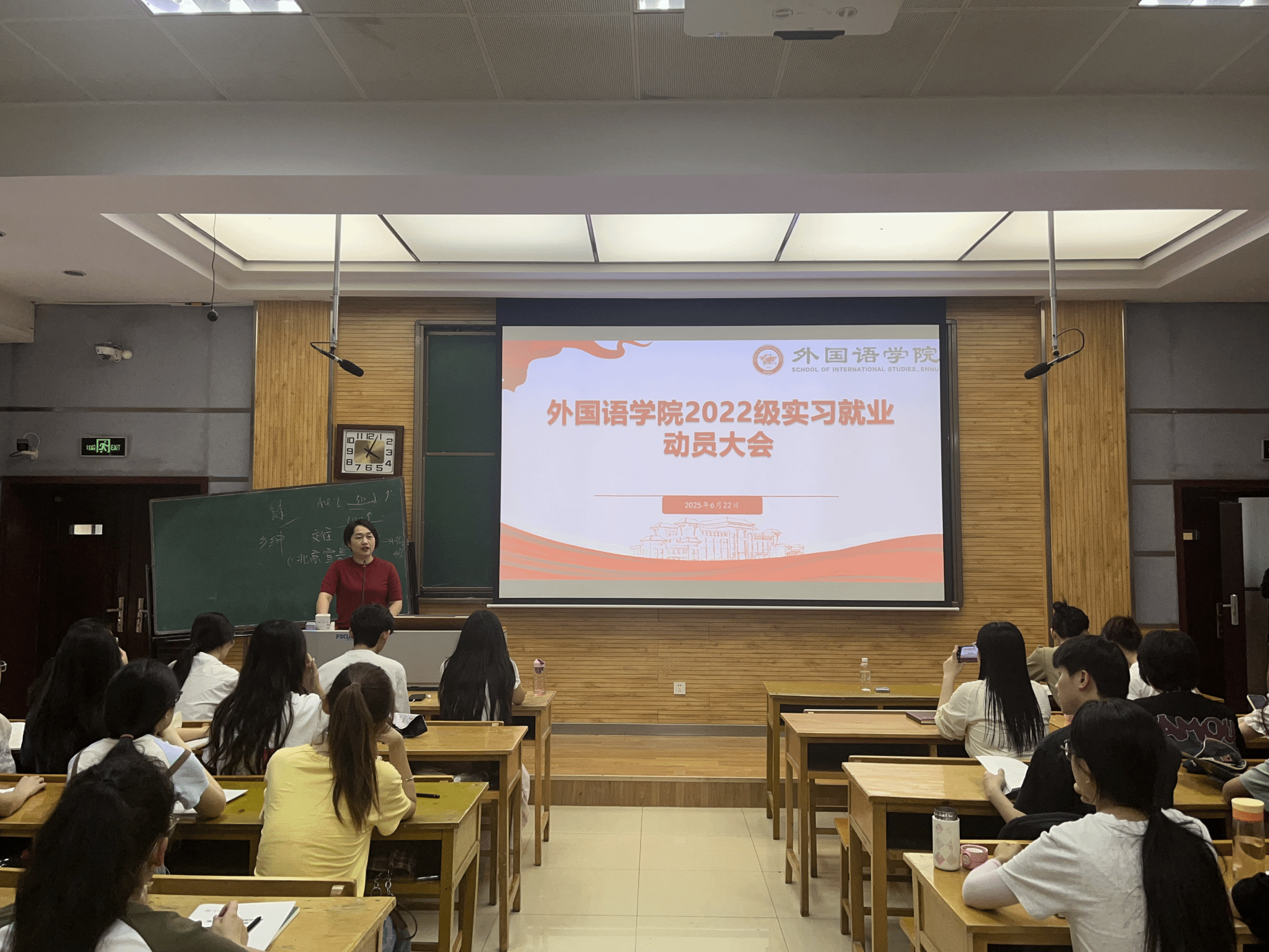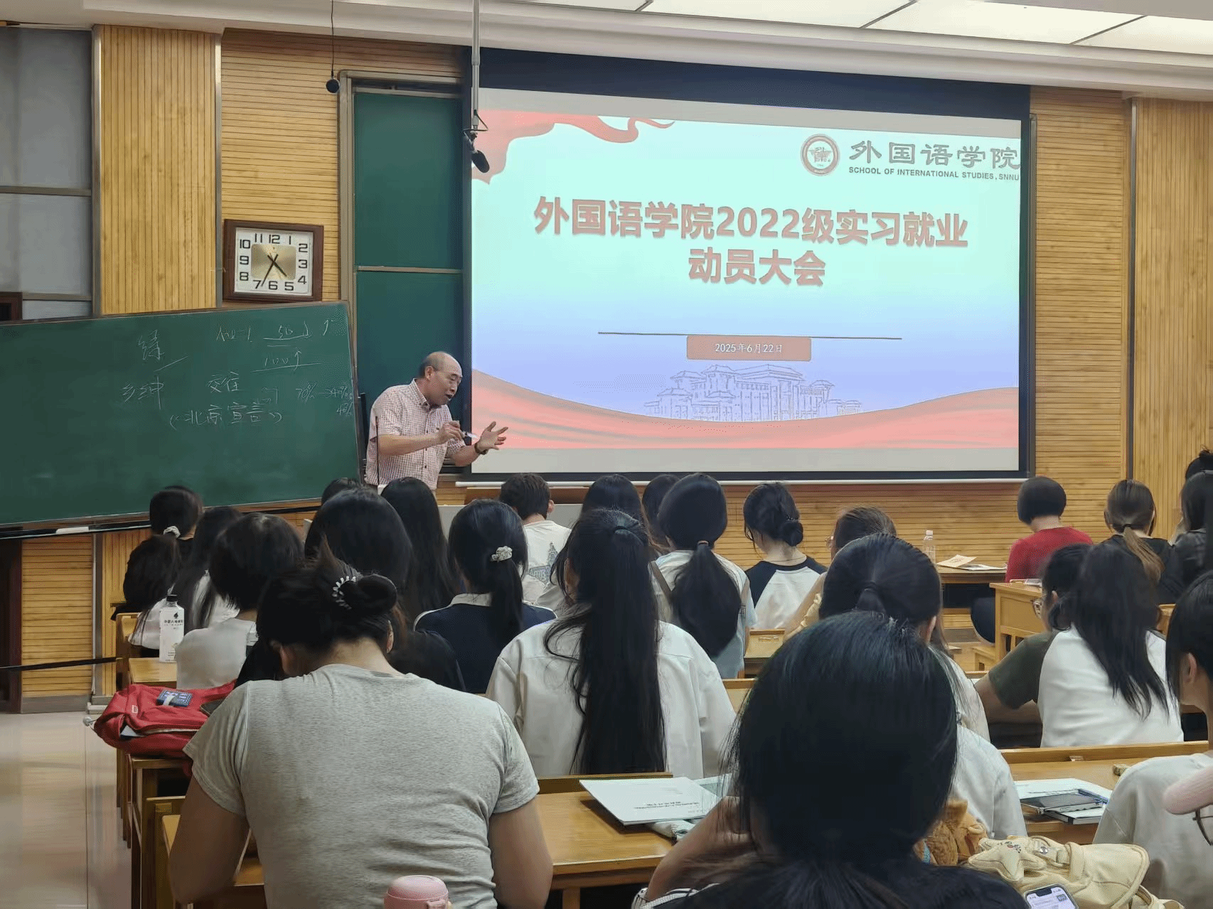 2025年6月22日下午4点,beat365中文官方网站在5304教室召开2022级学生实习就业动员会。beat365中文官方网站教学副院长孙坚、党委副书记鲁燕、教学秘书高红英出席会议,2022级全体学生参加。会议由2022级辅导员邹胜男主持。