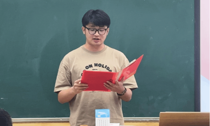 陈俊喆同学作为学院学生会主席团成员,在本次比赛中积极组织筹备。在表彰会上,他作为工作人员代表进行了发言。他复盘了学生会学习部与其他志愿者、工作人员在本次比赛中的工作,总结了实践经验,并对今后学生会在促进师范生技能训练方面的工作做出了展望。