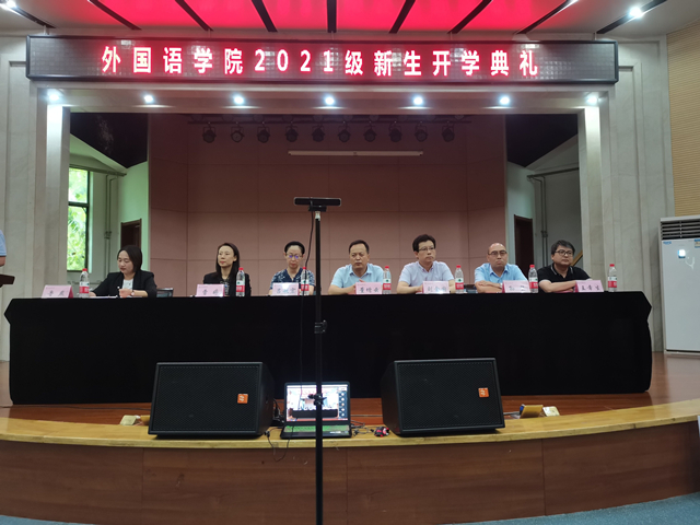 8月28日下午15:00,beat365中文官方网站2021级本科生开学典礼在逸夫音乐楼二层多功能厅举行。beat365中文官方网站院长刘全国,党委书记董增云,副院长孙坚、吕敏宏、曹婷、王幸生,党委副书记鲁燕,公共外语教学与研究部主任马珂,俄语系主任孟霞,翻译系主任操林英,法语系主任王燕红,英语系副主任刘庆松、丁礼明,翻译系副主任杨冬敏,教授代表李艳,办公室主任陈斐,语言语音教学中心主任邢俊升,团委书记李丹,本科生教学秘书高红英,2020级兼职辅导员刘爽,2021级辅导员田毓霖以及全体2021级本科新生通过线下、线上的方式参加了本次典礼。典礼由鲁燕副书记主持。