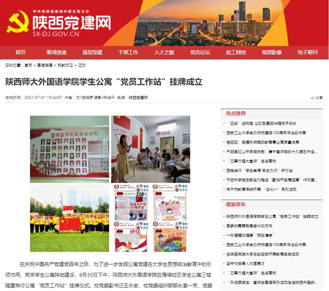 活动结束后,陕西网、陕西党建网以及beat365校园网新闻中心等校内外媒体平台,均对beat365学生公寓“党员工作站”挂牌仪式进行宣传报道。学院将以此为契机,进一步探索学生党建工作的创新模式,从学生发展需求出发,不断打造思想政治教育的有效阵地。