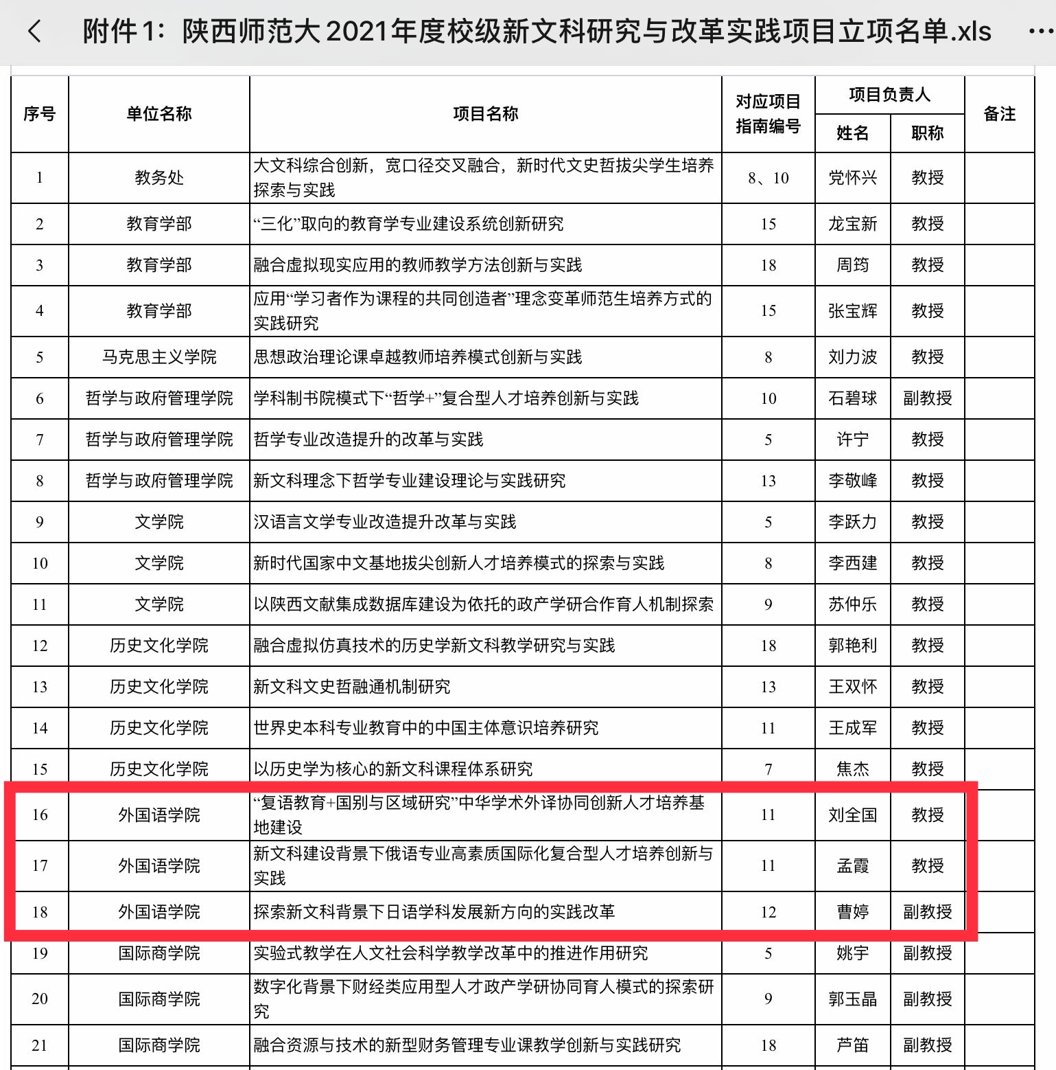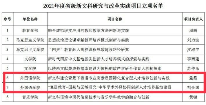 同时,beat365刘全国副院长、孟霞教授主持的项目,被学校推荐申报陕西省教育厅并成功获批陕西省新文科研究与实践项目立项。(立项名单见下图)