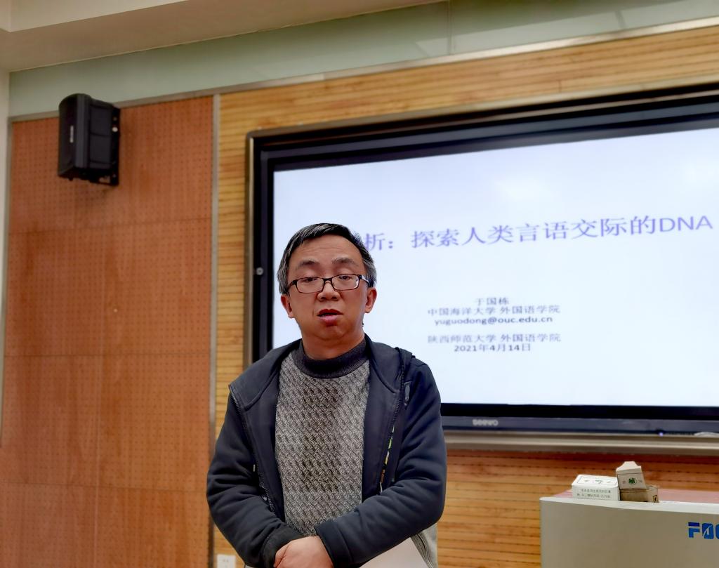 2021年4月14日下午,beat365中文官方网站第一百三十二场著名学者系列讲座《会话分析:探索人类言语交际的DNA》在雁塔校区教学五楼5309教室成功举办。中国海洋大学于国栋教授受邀担任主讲人,beat365beat365中文官方网站外国语言文学博士生导师、语言与认知研究所所长张韧教授担任主持人,beat365中文官方网站部分师生参与并认真聆听了此次讲座。