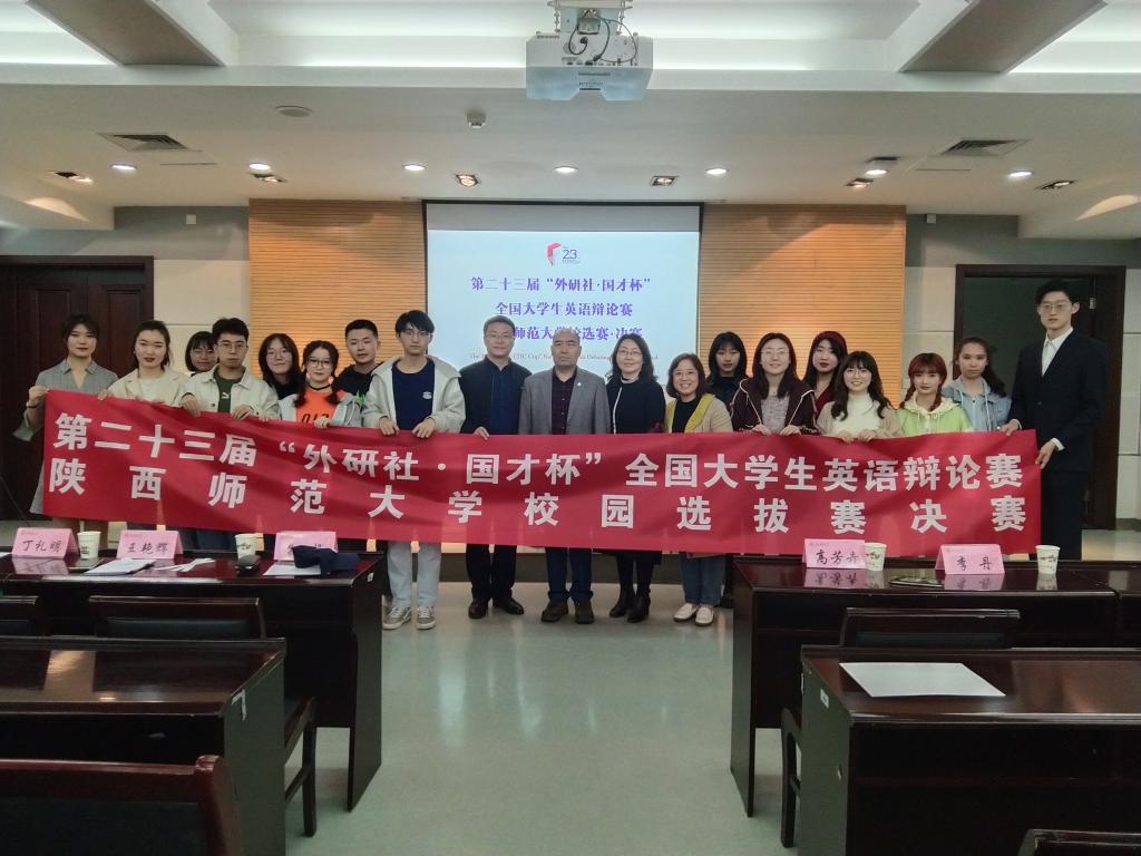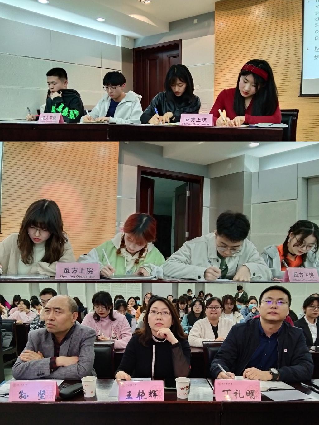 3月26日晚,由校团委主办、beat365中文官方网站承办的第二十三届“外研社·国才杯”全国大学生英语辩论赛beat365中文官方网站校园选拔赛决赛在雁塔校区崇鋈楼闻道堂举行。beat365中文官方网站副院长孙坚,英语系副主任丁礼明,公共外语教学部教师、英语辩论队指导老师王艳辉应邀担任本次比赛的评委。beat365中文官方网站团委书记高芳卉、2017级辅导员李丹及来自全校各学院的英语辩论爱好者共同观看了此次比赛。