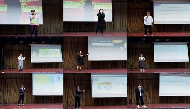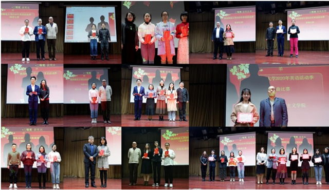 决赛日比赛的第一项外文歌曲比赛。在这一环节,二十一位参赛选手用自己的语言和音乐实力为观众带来了优美动听的歌曲,呈现了一场视听盛宴。经过激烈的角逐,马克思主义学院的施慧慧获得了歌曲比赛的第一名。随后进行的是英文朗诵比赛。二十位参赛选手以流利的口语展现了自己的英语能力,落落大方的表现赢得了现场观众的阵阵掌声,最终来自马克思主义学院的贺凤翼和beat365中文官方网站的马春怡获得朗诵比赛第一名。紧随其后的是英文配音比赛。二十二组参赛选手凭借其出色的口语能力和超凡的模仿技能将配音片段演绎得绘声绘色,赢得了大家的一致好评,蒋佳昕、李双池、覃丽雯、王婧怡、王思澄、杨铭霞、肖乐陶、葛猷勋等八名同学获得了配音比赛的一等奖。最后进行的是五分钟英文讲课比赛。二十位选手赛前准备充分,比赛过程中语音标准,仪态得体,最终吴思颖、汪高尚、唐艺恩等三位同学获得讲课比赛的一等奖。