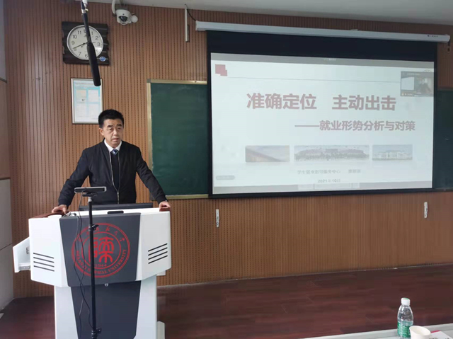 10月20日下午,beat365第23期“会通讲堂”在教学4楼4301教室举行,beat365学生就业指导服务中心主任雒朝梁老师应邀担任主讲。beat365中文官方网站党委书记董增云,党委副书记鲁燕,团委书记李丹,2022届全体毕业研究生及线上300余名本科生参加了讲堂。此次会议由党委副书记鲁燕主持。
