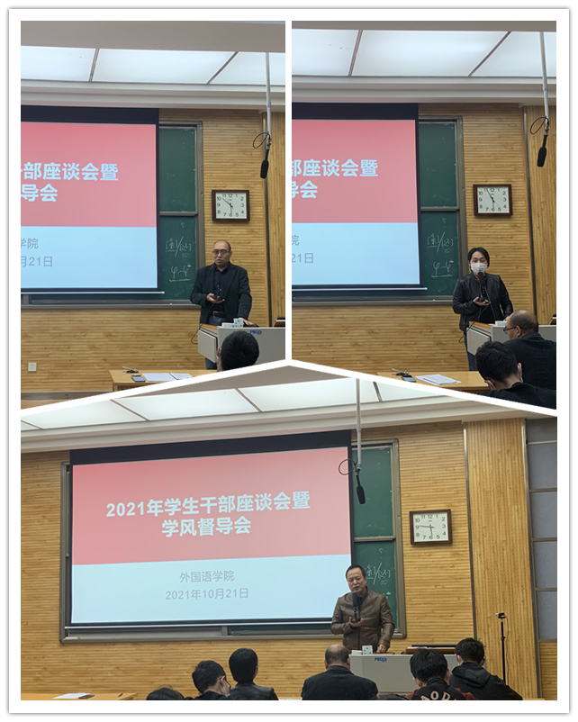 为了进一步了解学生在校情况,解决学生在学习生活等方面急难愁盼的问题,了解巡视反馈相关整改落实效果,检查课堂及校园意识形态情况,2021年10月24日下午5点,beat365中文官方网站在教学五楼5301教室开展了全体学生干部座谈会。beat365中文官方网站党委书记董增云、教学副院长孙坚、党委副书记鲁燕参加座谈。beat365中文官方网站本科和研究生所有班级班长、团支书、学生会和研究生会骨干共70余人参加了本次座谈。座谈会由鲁燕主持。