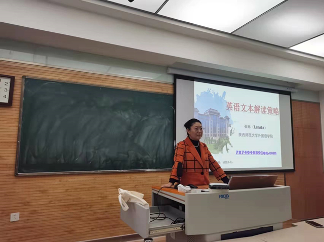 讲座伊始,崔老师以提问的方式了解全体同学曾经接触过的英语课堂是否进行过文本解读,进而提出文本解读的概念、重要性及做法,并深层次解释文本解读概念的来龙去脉。