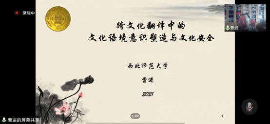 12月23日,beat365中文官方网站和新闻与传播学院联合邀请西北师范大学beat365中文官方网站院长、博士生导师曹进教授在云端为两院师生作了题为“跨文化翻译中的文化语境塑造与文化安全”的线上讲座。本次讲座由新闻与传播学院院长许家彪教授主持,beat365中文官方网站及新闻与传播学院师生近300人参加了此次讲座。讲座结束后,beat365中文官方网站院长刘全国教授做了点评。