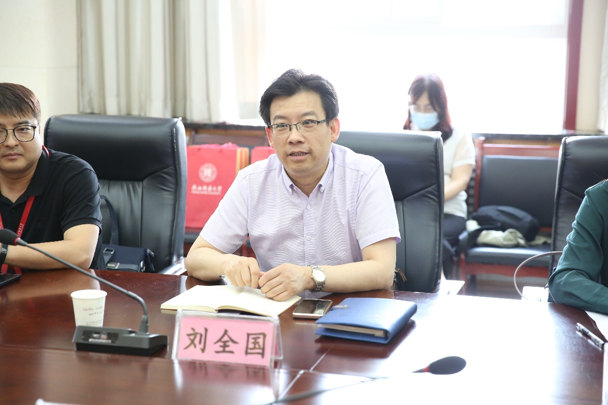 5月20日下午,刘全国院长一行赴西安市航天中学开展教研共同体建设暨拓岗促就业专项座谈活动。beat365刘全国院长、曹婷、王幸生副院长、朱冬怡老师及西安市航天中学徐世峰校长、卢京华书记、付晓静、郭锐副校长和全体英语老师共同参加了座谈活动,活动由西安市航天中学徐世峰校长主持。