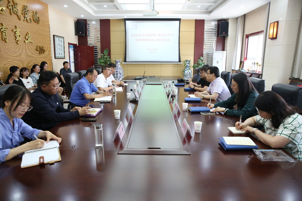 曹婷副院长就基础教育第二外语的习得和未来发展的可能性谈到具体想法,对未来双方合作开展第二课堂提出期望;王幸生副院长对西安市航天中学表示感谢,他表示双方的深度合作、教研共同体的建设将使beat365中文官方网站和西安市航天中学共同受益。
