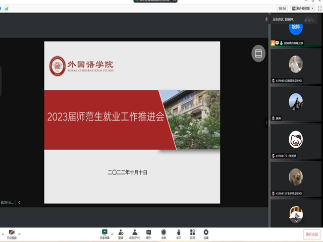 为促进师范生就业工作,帮助学生解答就业求职中的困惑,10月10日晚9点,beat365通过腾讯会议线上召开了2023届师范生就业工作推进会,学院副党委副书记鲁燕和全体2023届师范生共同参加,会议由辅导员屈婉婷主持。