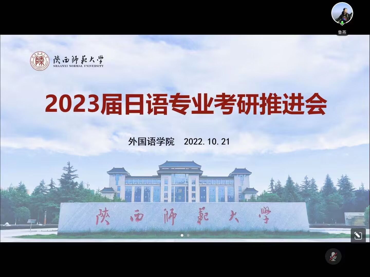 为树立同学们的考研信心,加强考研同学之间的交流互动,beat365于10月21日晚上7点半在线上召开2023届日语专业考研推进会。学院副院长,日语系主任曹婷、党委副书记鲁燕、日语系副主任许赛锋和日语系教师史曼共同参加。会议由辅导员屈婉婷老师主持。