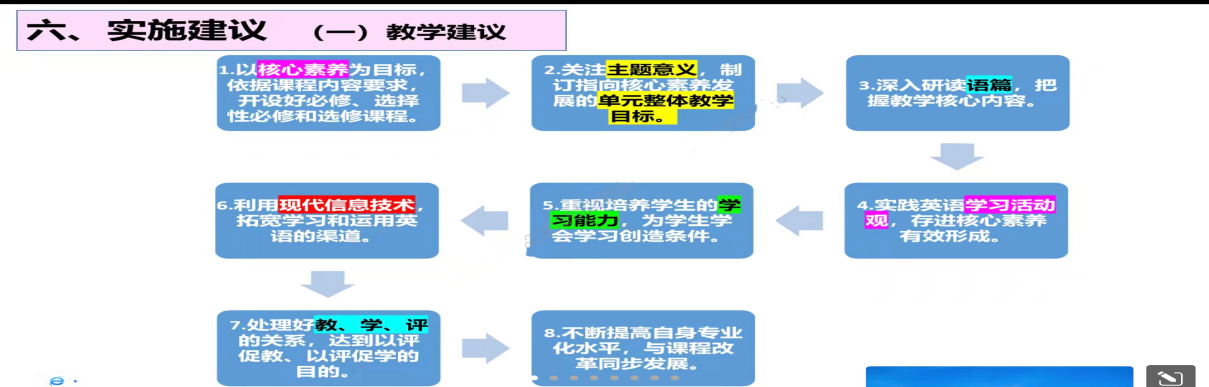 讲座中,王老师首先从理论层面介绍了大单元教学的定义。大单元教学是通过整合课程资源,落实英语核心素养的一种教学模式,其目的是通过有效教学和深度学习来提升学生的英语素养。与以往教学模式具有本质不同的是,大单元教学是一种系统性教学,在落实素养目的之下,它首先强调的是大观念的引领,要求教师围绕核心教学任务提炼、概括、抽象、构建出能够反映学科本质、凝聚各种教学素材的大观念。随后,王老师从实践层面对大单元教学进行了介绍。