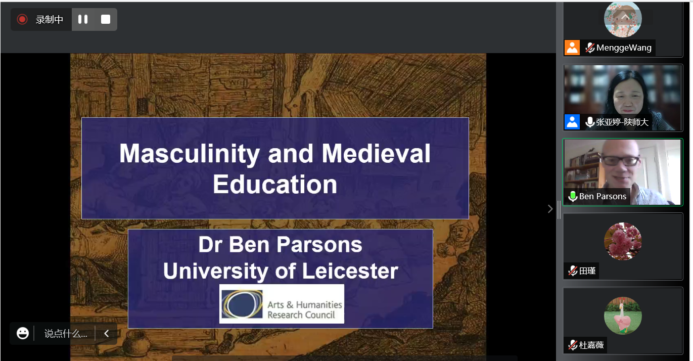 2022年12月6日晚7点,beat365通过腾讯会议平台成功举办了以“中世纪教育中的男性气质培养”为主题的第一百五十场著名学者系列讲座。本次讲座由英国莱斯特大学文学与艺术学院本·帕森斯教授主讲,beat365张亚婷教授主持,近200名校内外师生参加了讲座。
