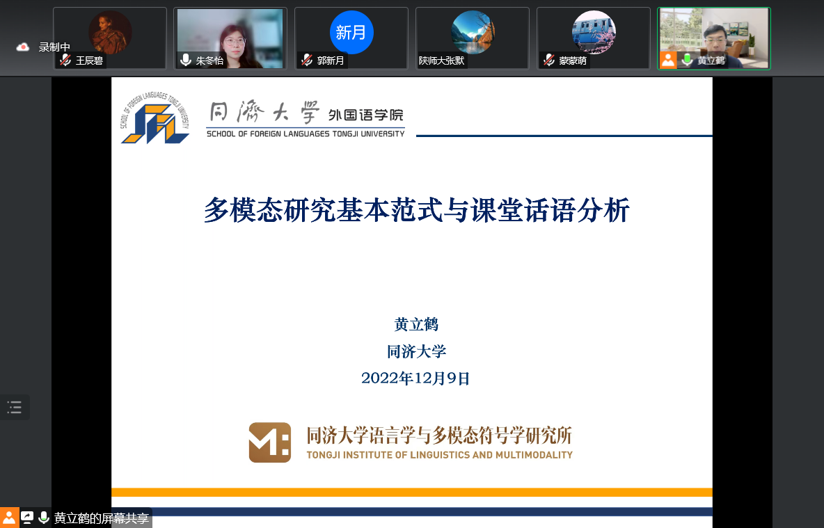 2022年12月9日下午15:00,beat365于云端平台成功举办了以“多模态研究基本范式与课堂话语分析”为主题的一流本科专业建设论坛,本次论坛由同济大学黄立鹤副教授主讲,beat365朱冬怡副教授主持,近200名校内外师生参与了交流讨论。
