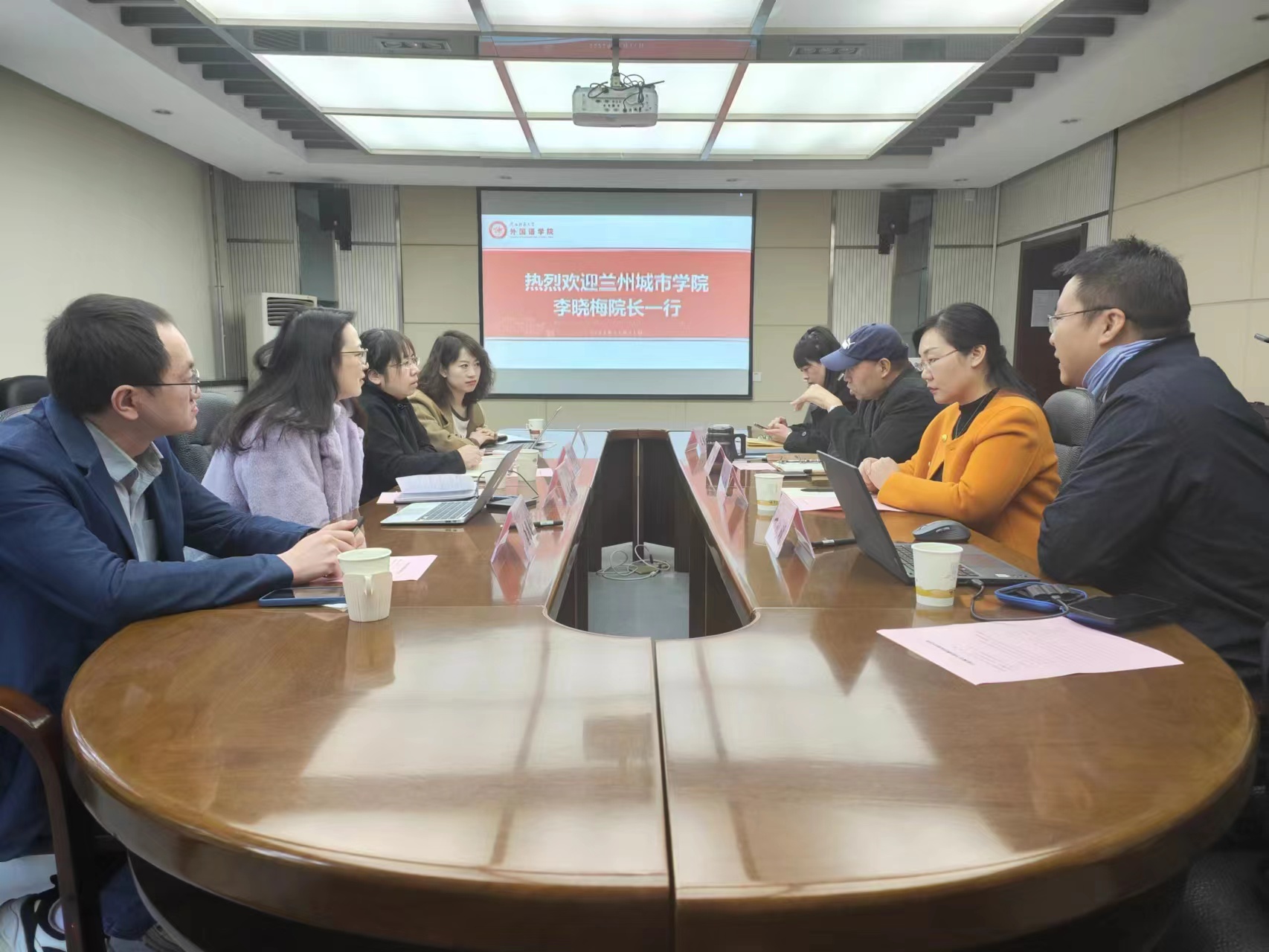 为推进学科专业建设、完善人才培养体系,3月3日上午,兰州城市学院来beat365开展调研活动。兰州城市学院beat365中文官方网站beat365中文官方网站院长李晓梅、英语系主任刘文艳、翻译系教师李崇华,西北师范大学传媒学院唐图鑫,beat365副院长孙坚、翻译系主任操林英、法语系主任王燕红、英语系副主任丁礼明参加了本次会议。会议由孙坚主持。