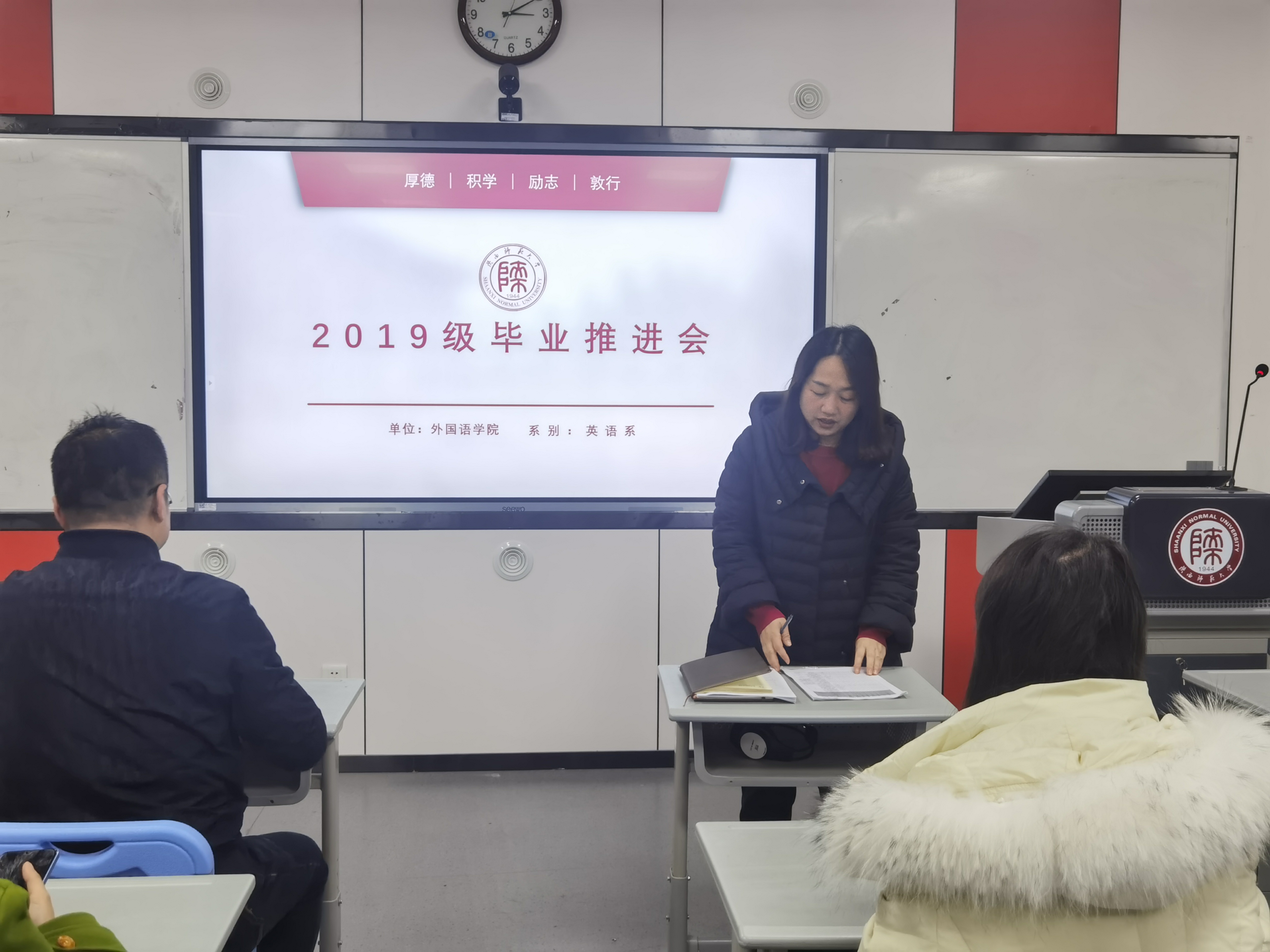 为进一步掌握beat3652023届英语系毕业生的就业情况,推进毕业生“稳就业、就好业”的工作,beat365于3月24日下午在教学六楼6301召开2023届英语系就业工作推进会,学院副院长吕敏宏、党委副书记鲁燕、英语系主任朱冬怡、教师代表王立永、英语系各班班长以及未就业学生共同参加。会议由丁礼明老师主持开展。