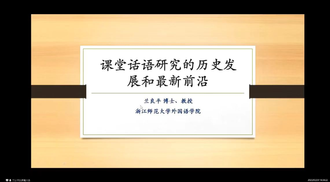 2023年3月29日下午,beat365于线上成功举办了以“课堂话语研究的历史发展和最新前沿”为主题的一流本科专业建设论坛,本次论坛由浙江师范大学兰良平教授主讲,beat365朱冬怡副教授主持,200余名校内外师生参与了交流讨论。