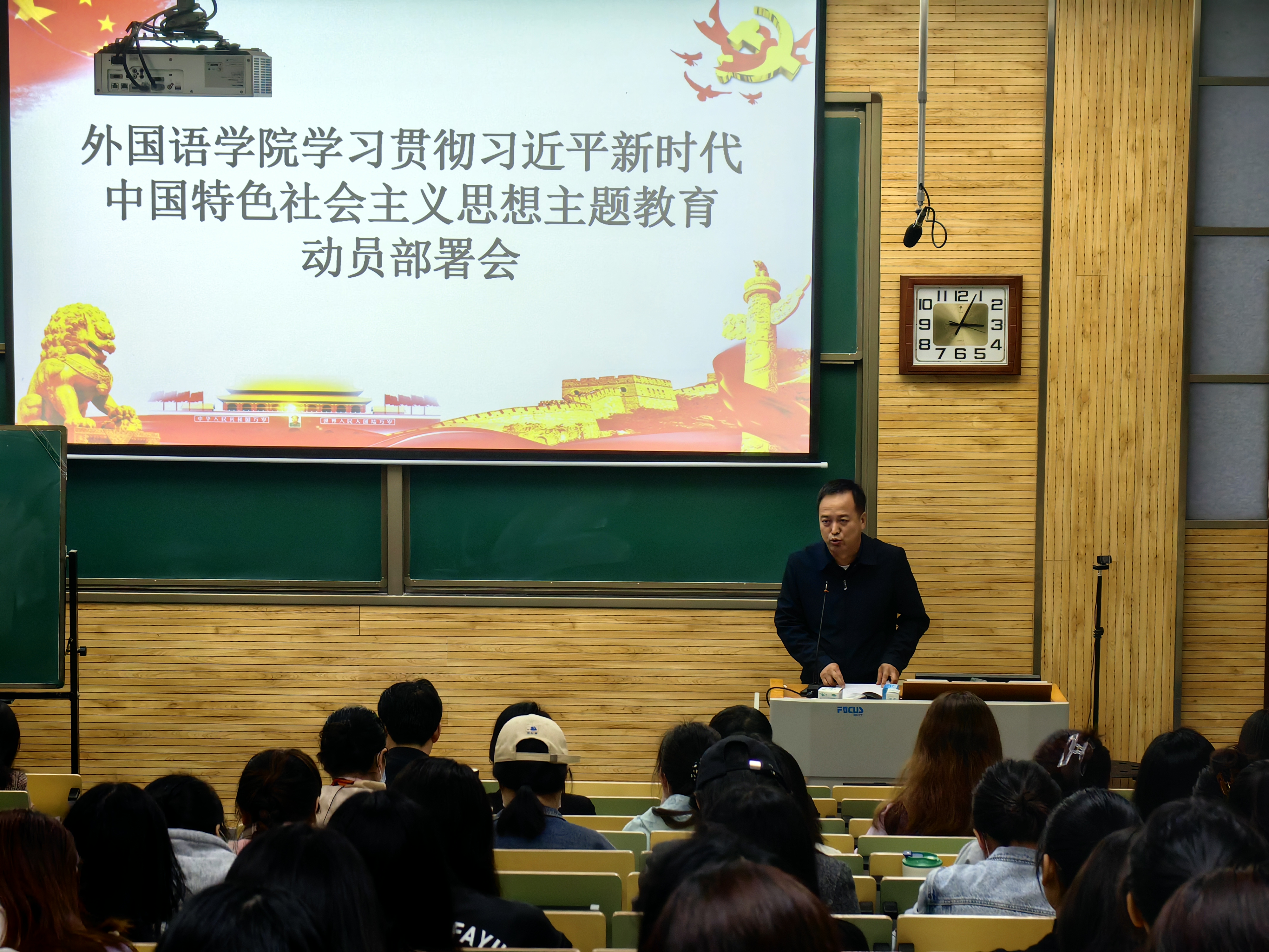 5月6日下午15:00,beat365党委于雁塔校区教学五楼5201教室召开学习贯彻习近平新时代中国特色社会主义思想主题教育动员会。学院党委书记董增云作动员讲话。会议由学院院长刘全国主持。