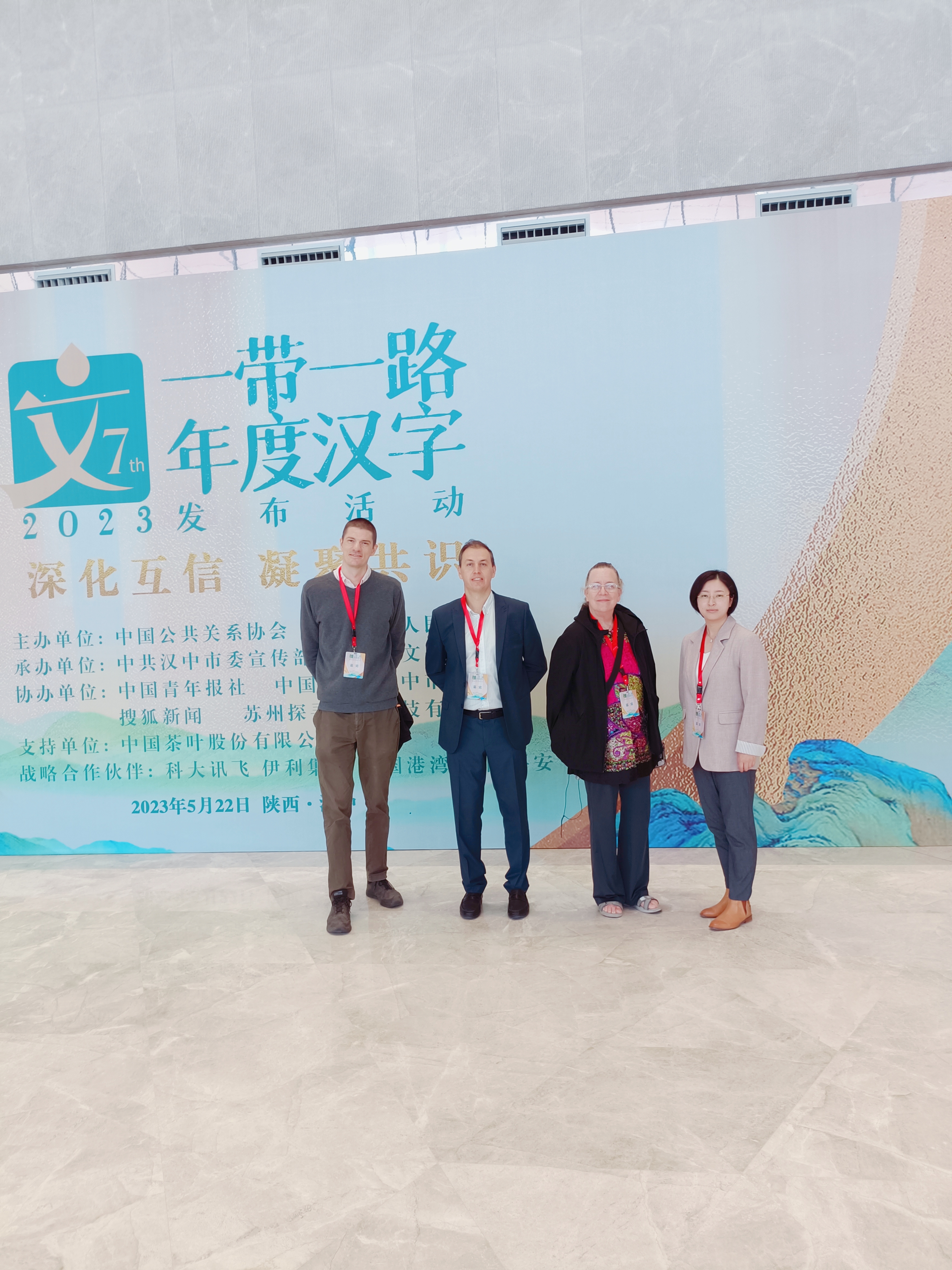2023年5月22日,由中国公共关系协会和汉中市人民政府主办的2023“一带一路”年度汉字发布大会在陕西省汉中市召开,约有800人参加本次会议。中共汉中市委书记张烨,政协陕西省十二届委员会副主席魏增军,中国公共关系协会会长、国务院新闻办公室原副主任郭卫民出席大会并分别为大会致辞。beat365中文官方网站派出由英语系教师范莎博士作为领队,外籍教师Mary Beth Leatherman(美国)、Jack Daniel Bouquet(英国)及Philippe Emmanuel Cousté(法国)为成员的代表团应邀参加本次会议。