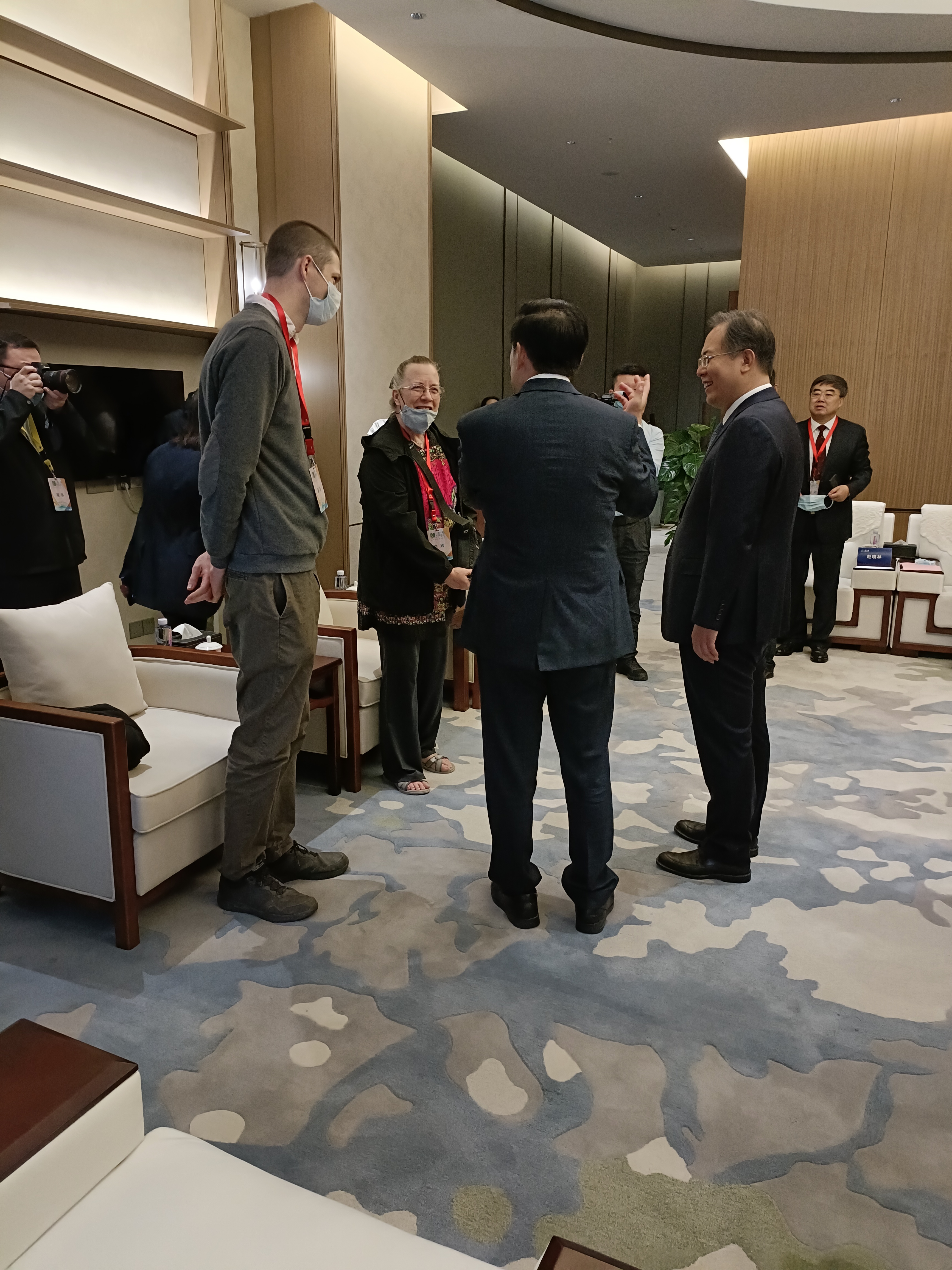 图2 中共汉中市委书记张烨与beat365外教会面交谈