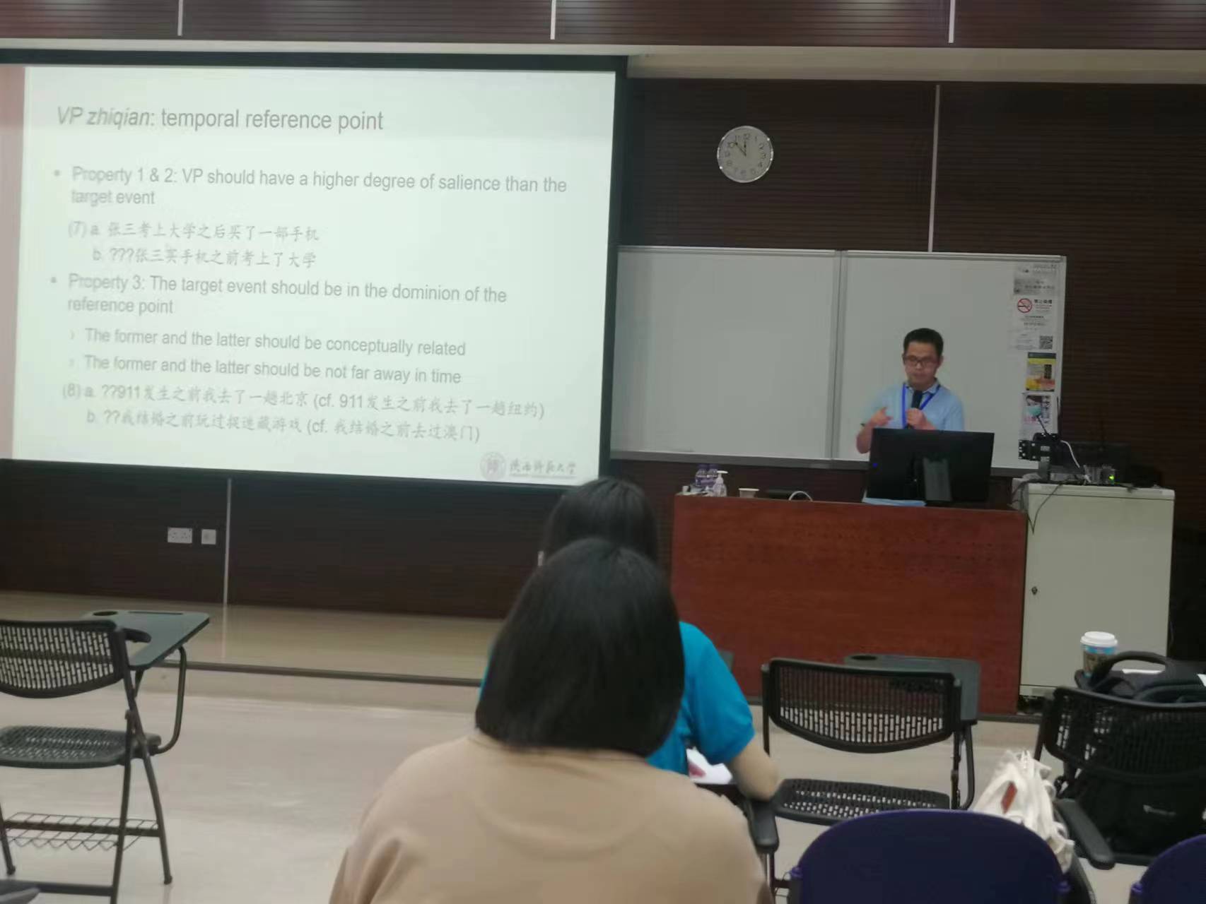 beat365中文官方网站张韧教授(第三作者)、王立永副教授(第一作者)和本科生冯奕嘉同学(第二作者)应邀参加了本次会议,并宣读题为“When meiyou does not negate: A cognitive analysis of VP zhiqian and meiyou VP zhiqian in Mandarin Chinese”的会议论文。论文以认知语法中的认知参照点模型和基线/加工模型为理论框架,分析了“没有”所带来的羡余否定的概念生成机制,并论证了“VP之前”和“没有VP之前”不同分布的语义限制条件。石定栩教授等与会学者就论文的观点予以肯定并提出了中肯的建议。