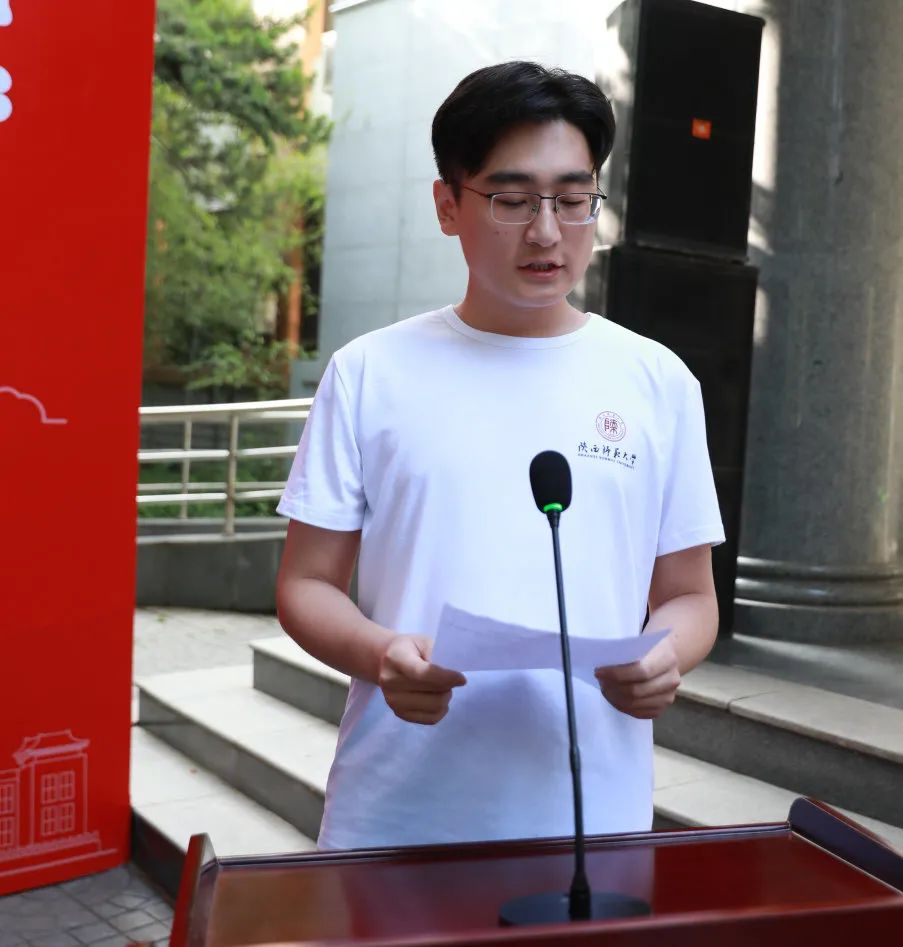 本科生代表、英语师范专业霍宇阳同学代表全体本科生表达对学院领导、老师和亲友的衷心感谢。他表示,作为师范生,未来一定秉持学校“西部红烛、两代师表”精神,为基础教育事业发展贡献自己的青春力量。