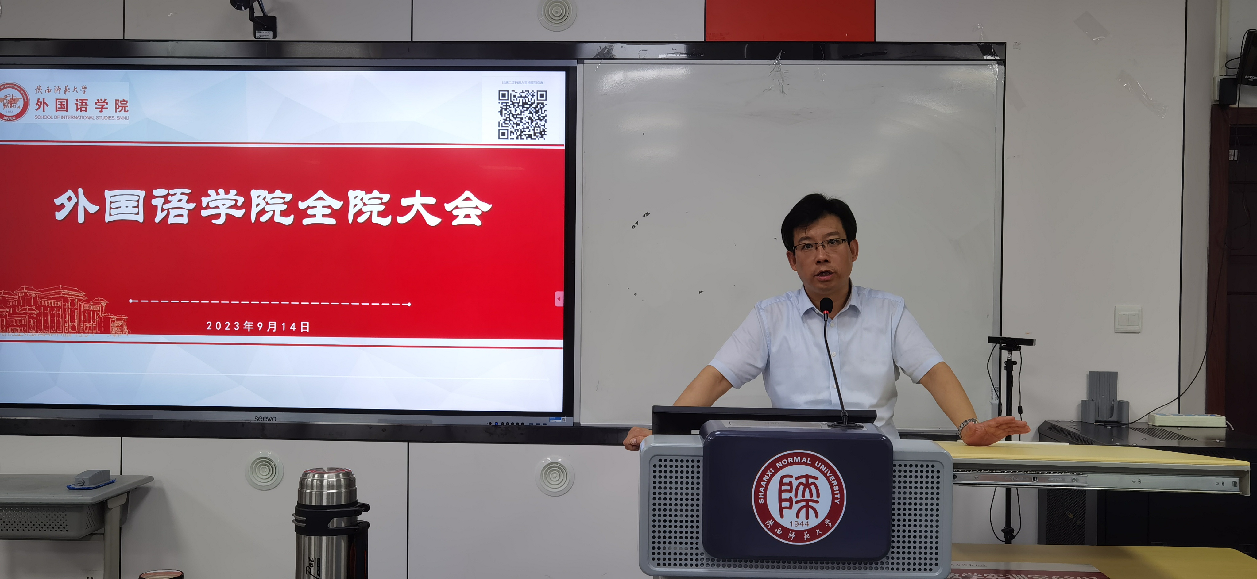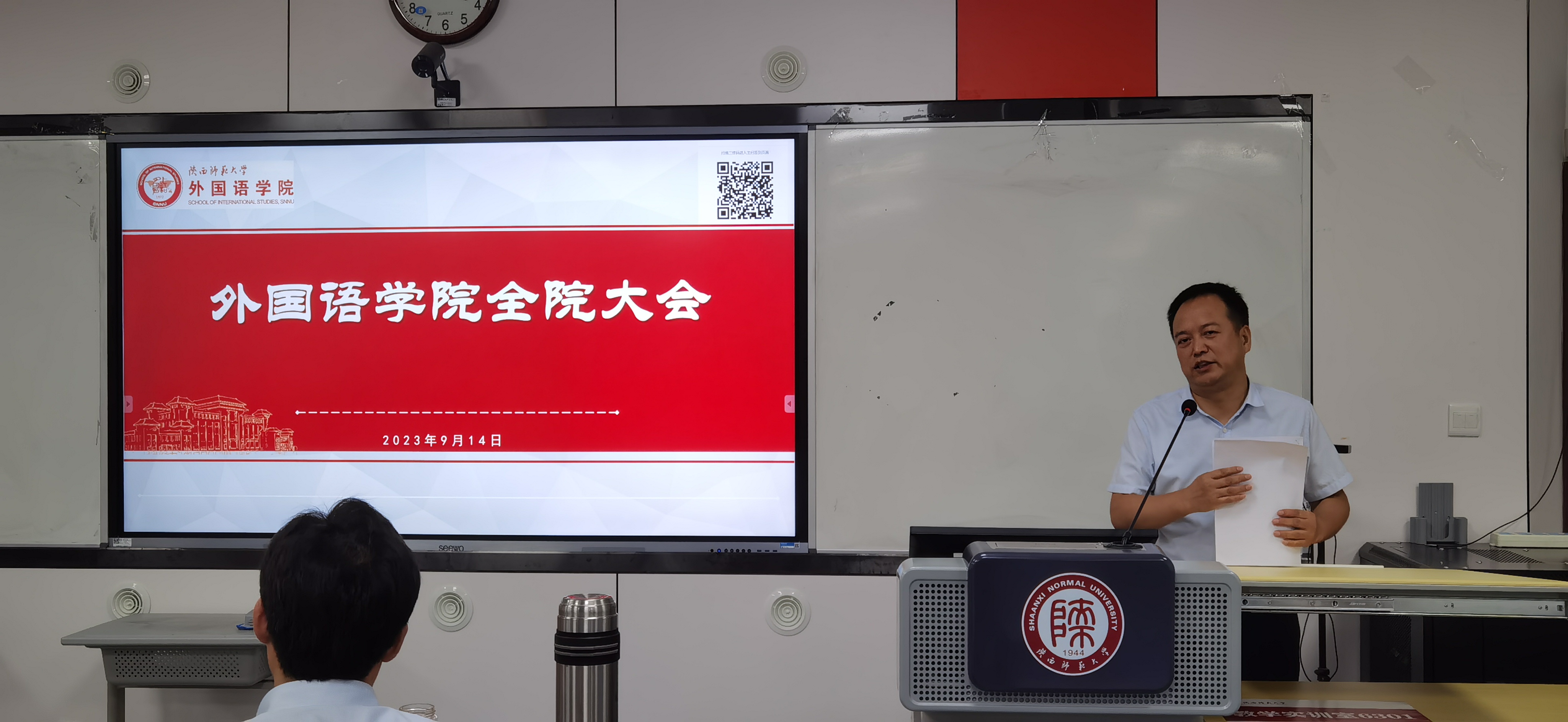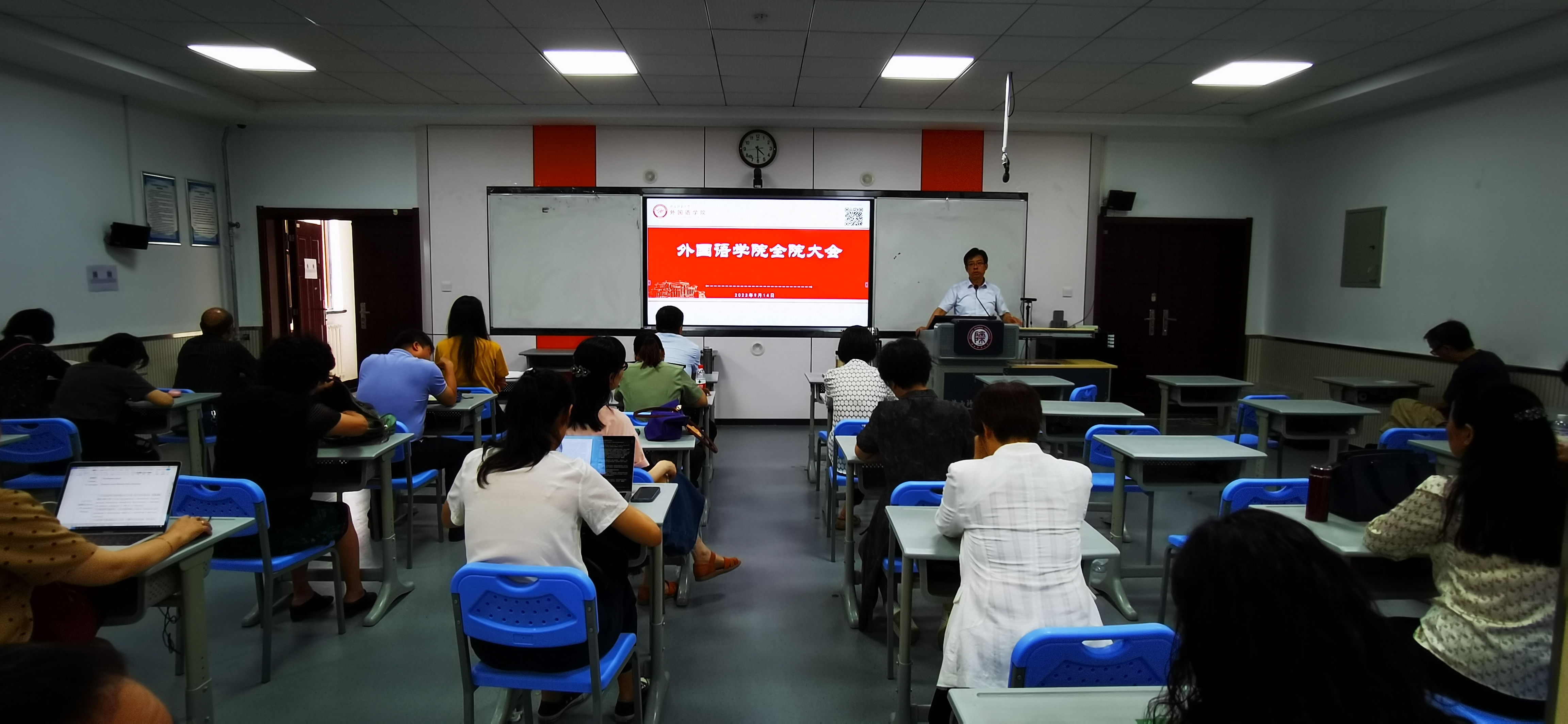 9月14日下午4时,beat365中文官方网站在雁塔校区教学六楼301、346召开新学期工作部署大会。院长刘全国,副院长孙坚、吕敏宏、曹婷、王幸生、朱冬怡,党委副书记鲁燕以及全院教师参加了会议。会议由学院党委书记董增云主持。