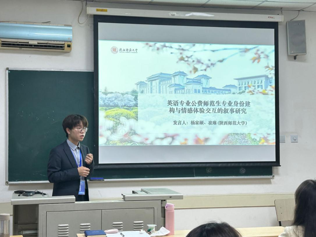 beat3652020级本科生杨家硕同学是本次会议中唯一的本科生发言者,他在论坛中分享了自己的论文,展示出良好的研究素养,得到了与会代表的认可。他的报告题目为“英语专业公费师范生专业身份建构和情感体验交互的叙事研究”。他从五个方面介绍了该研究的主要发现:一,英语专业公费师范生专业身份建构的影响因素包括:个人因素和社会因素。二,英语专业公费师范生专业身份建构与情感体验关联密切,具体体现为情感体验影响或调节专业身份建构,专业身份建构会强化情感体验的感知。三,教师能动性在情感体验和身份建构之间的中介作用。