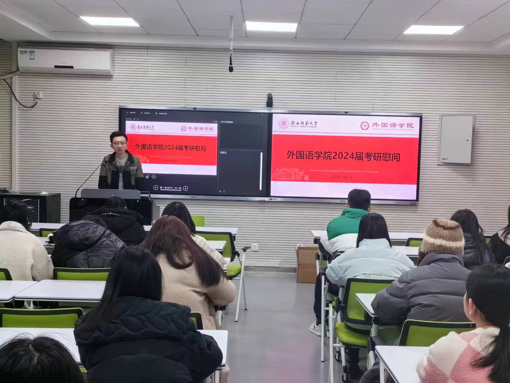 为鼓舞激励2024届考研学子以良好的状态备考冲刺,12月5日下午17:00,学院在6325教室专门开展了2024届考研学生加油慰问会。院长刘全国出席会议并讲话,会议由本科毕业班辅导员高宇轩主持。
