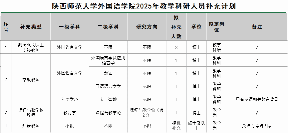 1. 按照学校统一部署,2025年人员招聘工作统一在“beat365中文官方网站人才招聘系统”内完成,应聘人员应在招聘系统内完成信息登记和材料上传,操作说明见http://rsc.snnu.edu.cn/info/1036/3672.htm。同时填写beat365中文官方网站补充教学科研人员审批表(附件3),并与应聘人员毕业证、学位证、代表性成果(论文、著作、专利等)、获奖证书、项目批件、职称相关证明、留学回国人员证明等材料一并以PDF格式发送至邮箱sdwy@snnu.edu.cn,学院根据工作安排及应聘情况不定期组织考核。